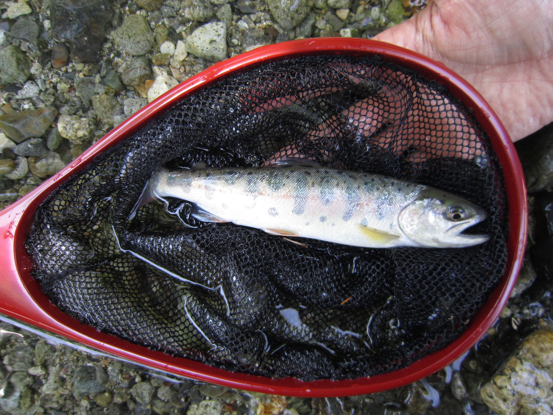 小さいですがヤマメをキャッチできました
